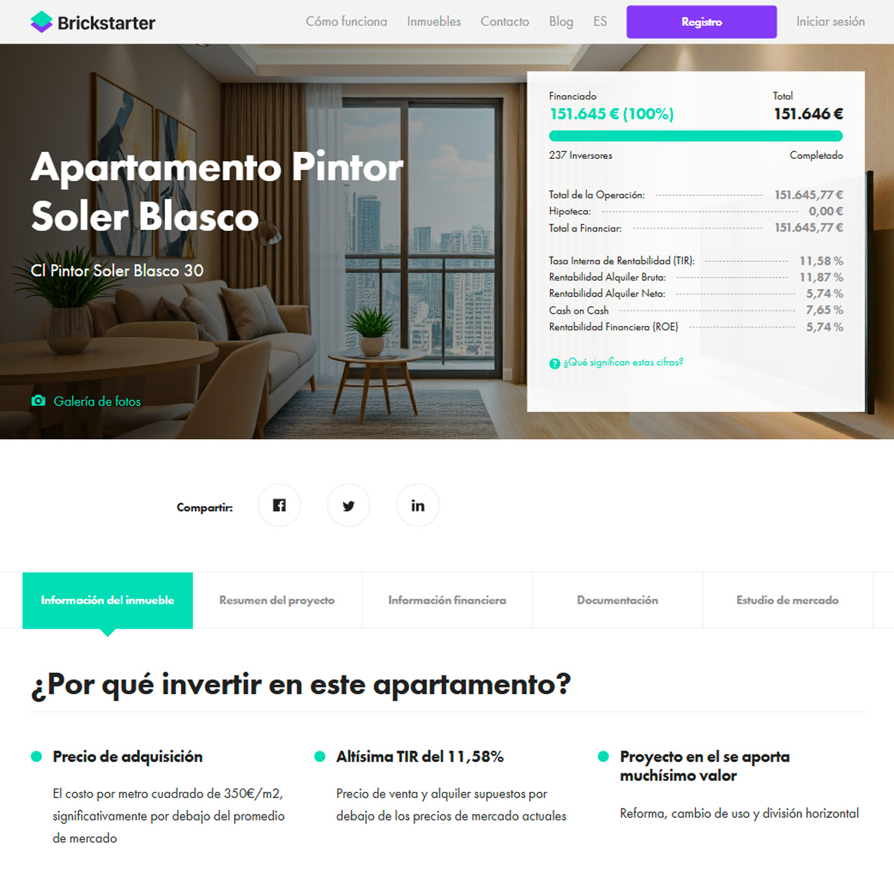 Brickstarter es una plataforma de inversión en propiedades inmobiliarias que permite a los usuarios invertir en proyectos seleccionados y diversificar su portafolio de bienes raíces sin necesidad de adquirir una propiedad completa.